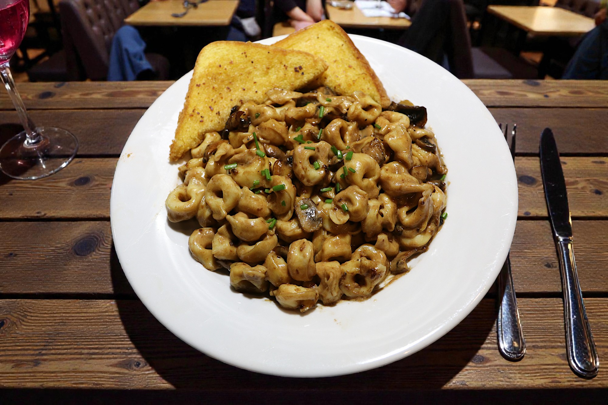 Cheese tortellini tossed in our creamy mushroom sauce, finished with herbs and parmesan.