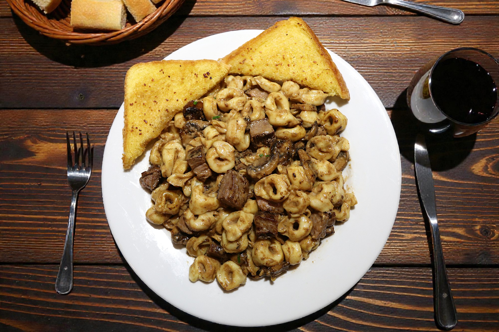 Flank steak, cheese tortellini tossed in our creamy mushroom sauce, finished with herbs and parmesan.
